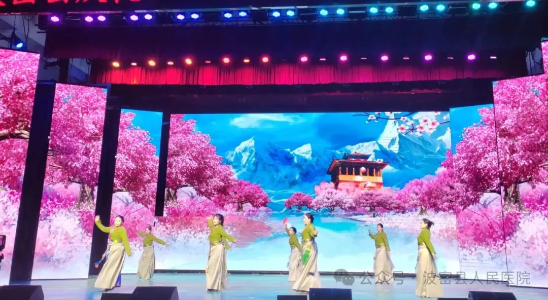 文艺演出在舞蹈《北京的金山上》中拉开序幕;合唱《一起走过的日子》深切表达了粤藏一家亲的深情厚谊;《藏医养生操》展现了新时代护理工作者解放思想、创新求变的信心和决心。随后,独唱、合唱、集体舞等形式多样的精彩节目轮番上演,平时工作中一丝不苟的白衣天使,此时幻化为美丽的仙子,与灯光和舞台融为一体,歌声动听,舞姿婀娜,不仅展现了护理人的激情与风采,也赢得了现场观众阵阵欢呼和掌声。