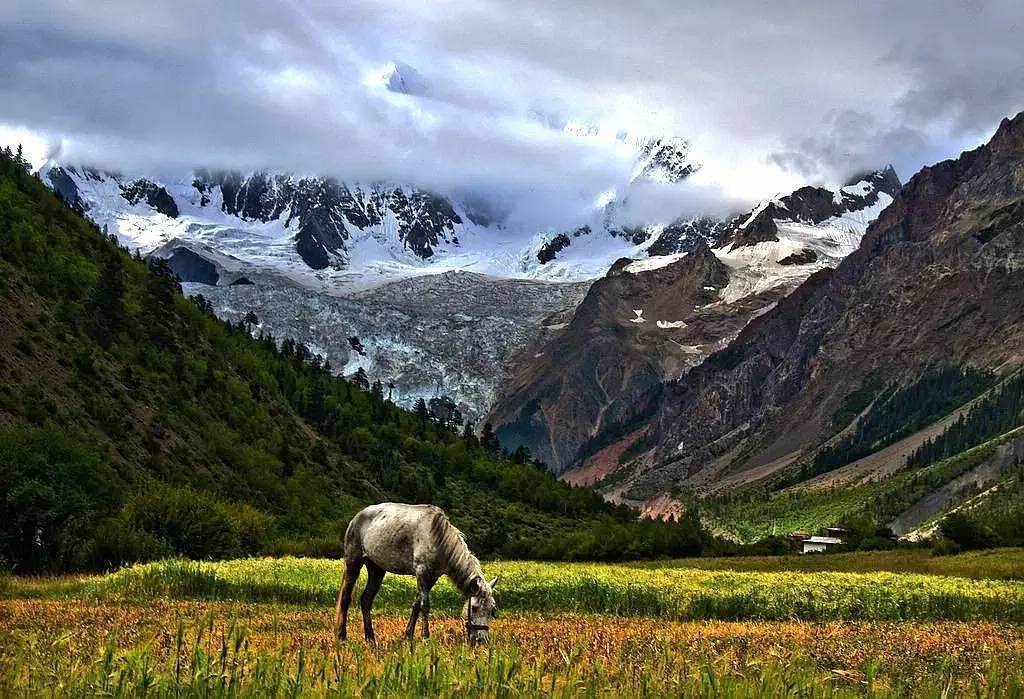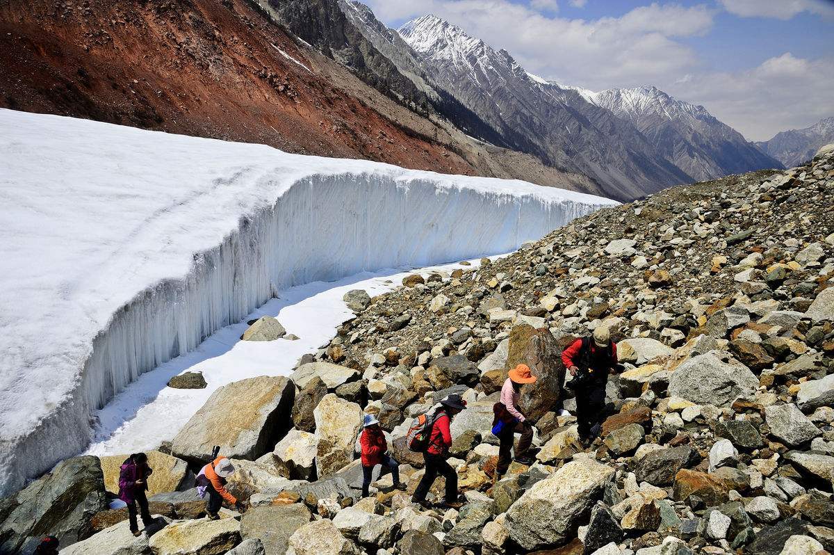 冰川周边山花烂漫,林海葱茏舞银蛇。冰川下段已穿行于针阔叶混交林带,是西藏最主要的海洋型冰川、中国三大海洋冰川之一,也是我国境内海拔最低的冰川。
